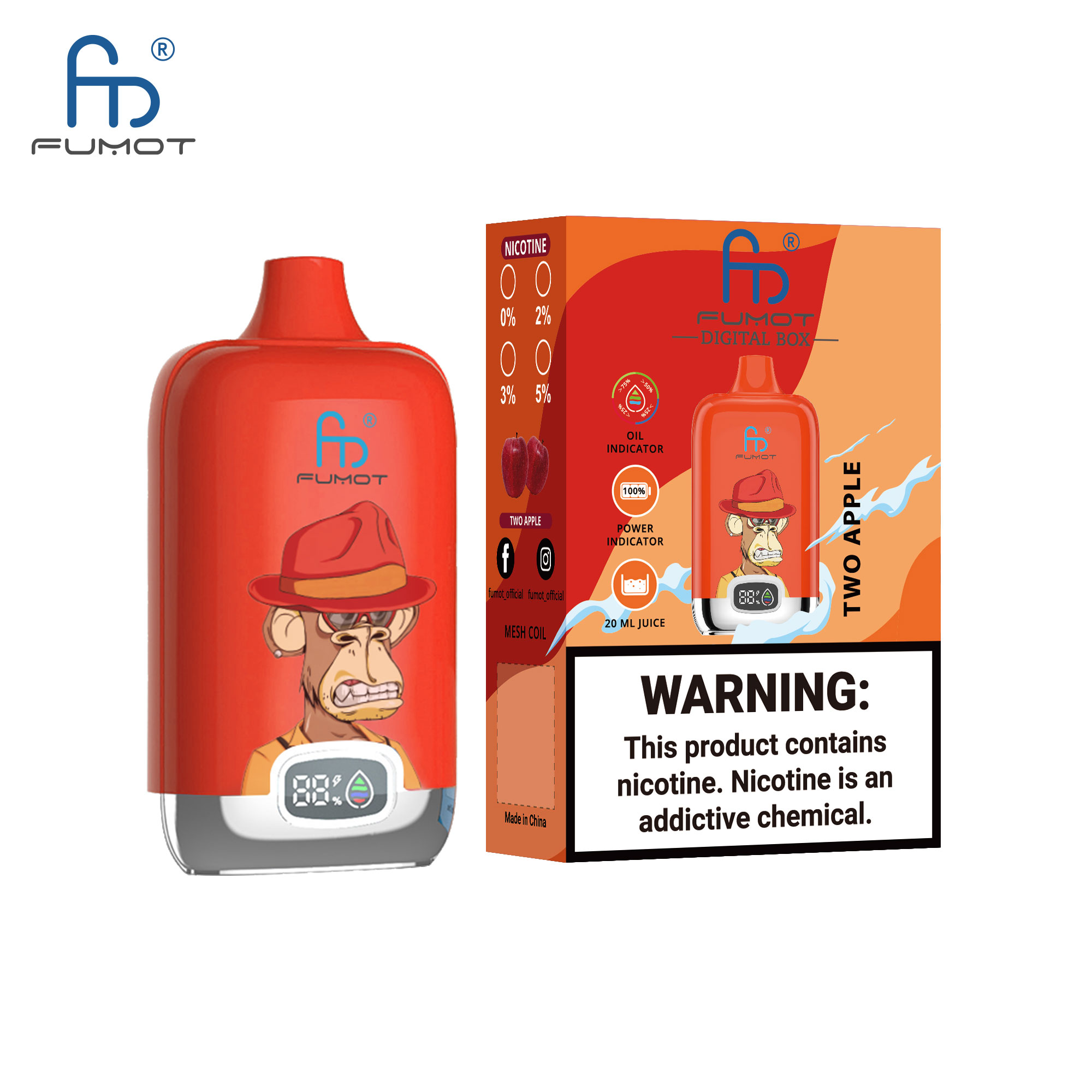 De Fumot Digital Box 12000 Two Apple is perfect voor vapers die op zoek zijn naar een hoogwaardige, duurzame ervaring met dubbel appelgenot. Of u nu op zoek bent naar gemak, prestaties of gewoon een e-sigaret met karakter, dit apparaat voldoet op alle vlakken.