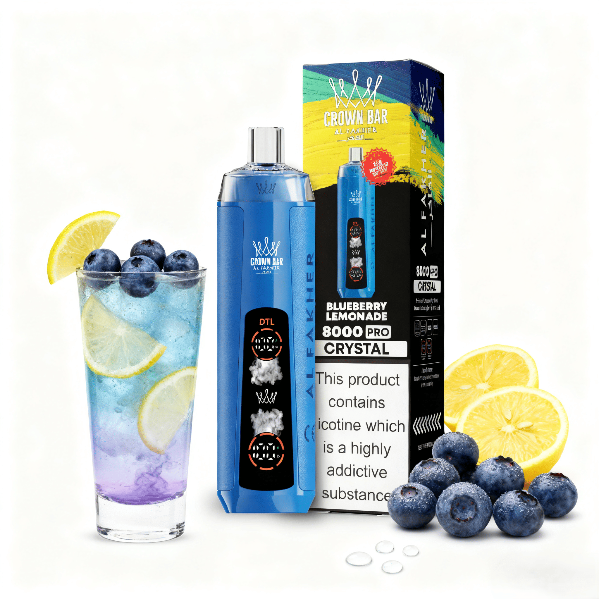 Dank der DTL-Inhalationstechnologie produziert der AL Fakher 8000 Crystal Berry Ice groรzรผgige Dampfwolken und einen luftigen, angenehmen Zug โ vergleichbar mit dem Erlebnis einer klassischen Beeren-Shisha, modernisiert fรผr den tรคglichen Gebrauch.