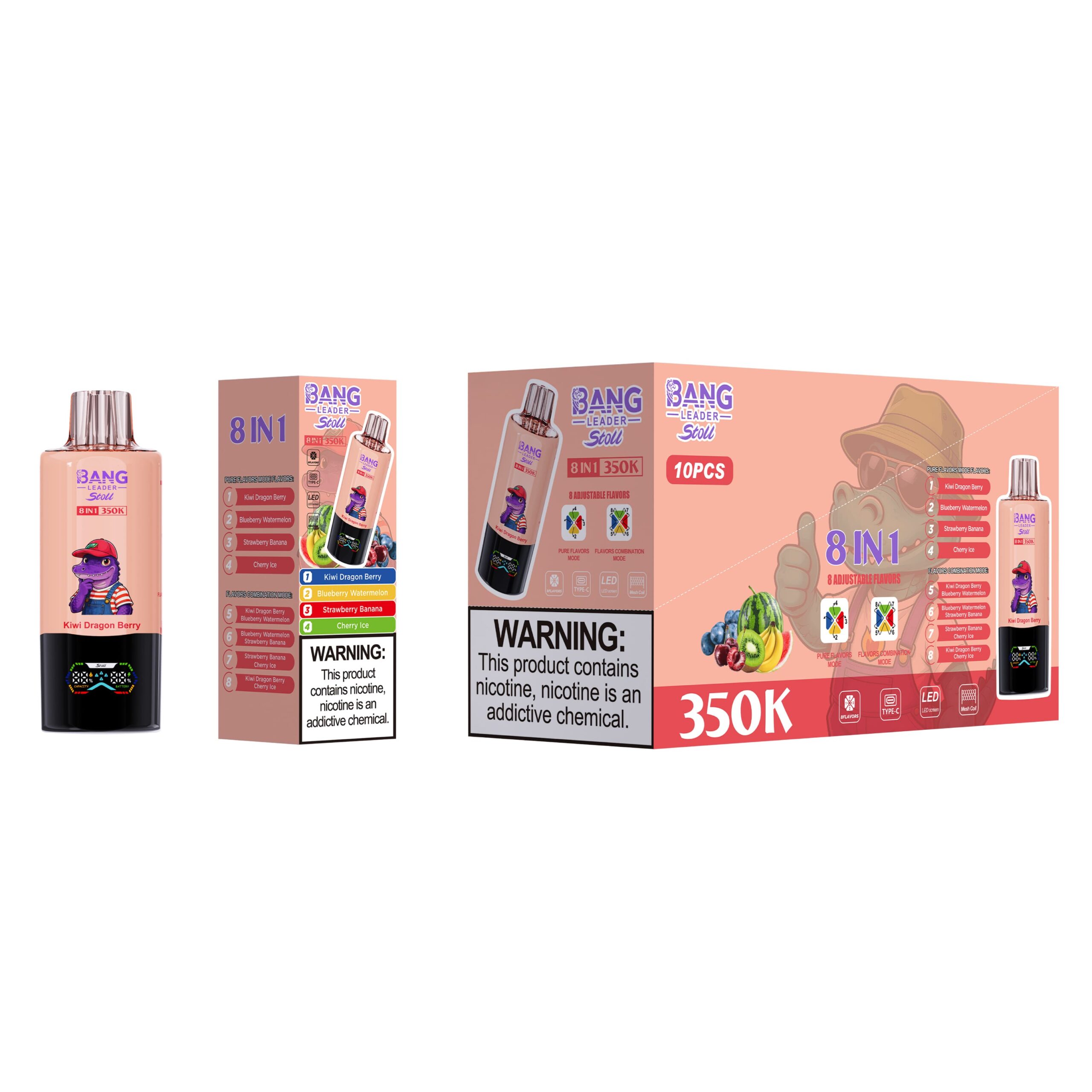 Bang Leader 350K Kiwi Dragon Berry/Blueberry Watermelon/Strawberry Banana/Cherry Ice โ Highlights