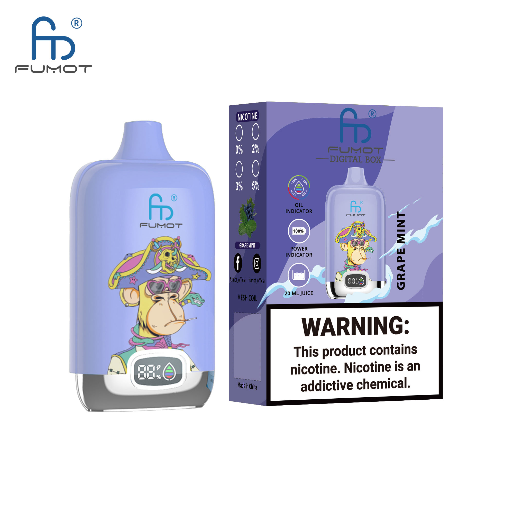 Die Fumot Digital Box 12000 Grape Mint ist perfekt für Dampfer, die ein qualitativ hochwertiges, langlebiges Erlebnis mit Trauben-Minz-Frische suchen. Ob Sie nach Bequemlichkeit, Leistung oder einfach einer E-Zigarette mit Statement-Charakter suchen – dieses Gerät liefert auf ganzer Linie.