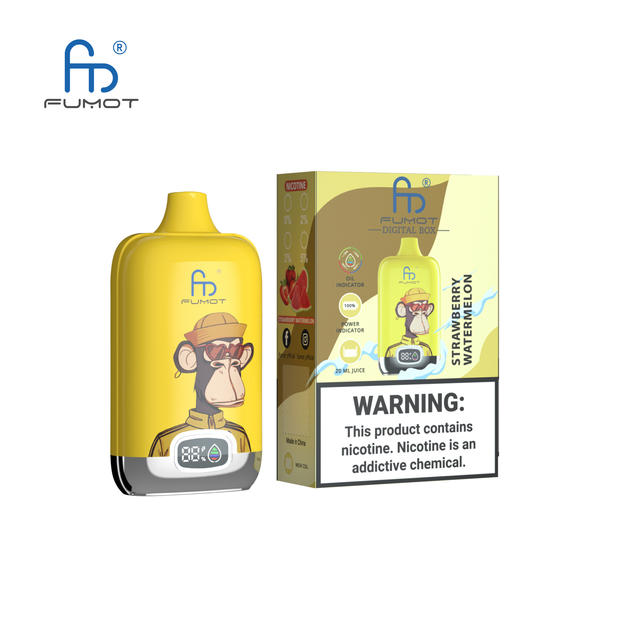 Mit ihrer ausdrucksstarken Geschmackskombination, ihrer technischen Raffinesse und ihrer praktischen Handhabung ist die Fumot Digital Box 12000 Strawberry Watermelon die perfekte Wahl für Dampfer, die sommerliche Fruchtaromen in Premium-Qualität suchen.