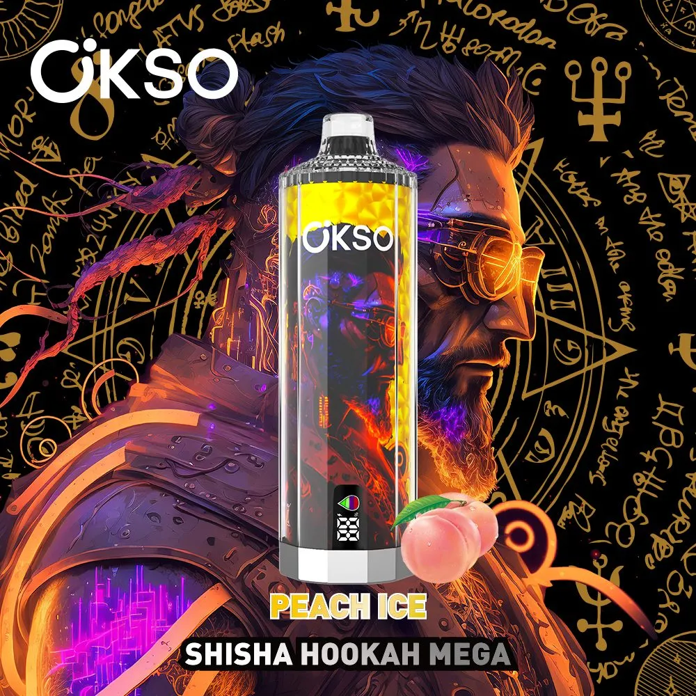 Die OKSO Shisha Hookah Mega 50000 Peach Ice vereint reife Pfirsiche mit erfrischendem Menthol fรผr bis zu 50.000 Zรผge. Triple-Mesh-Coil-Technologie, LED-Display, 40ml E-Liquid und 1100mAh-Akku mit Type-C-Schnellladung bieten erstklassigen Komfort. Anpassbarer Airflow, erhรคltlich in 0-5% Nikotin.